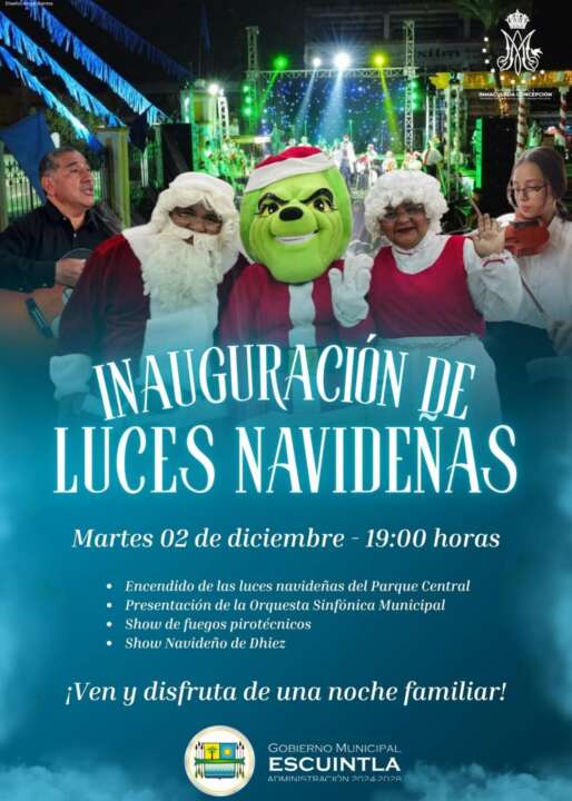 Este martes 2 de diciembre a las 19:00 horas, el Parque Central de Escuintla será el escenario de la esperada Inauguración de Luces Navideñas.
